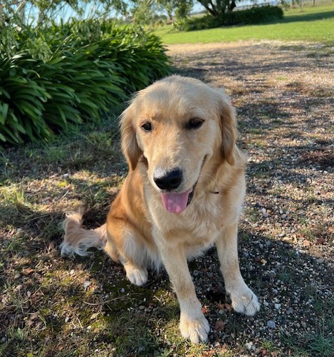 Frankie is our beautiful female golden retriever. She has a very gentle, affectionate nature. She is quite smart and she enjoys retrieving balls. Frankie is our big sweetie. Please note that this dog is not for sale.
