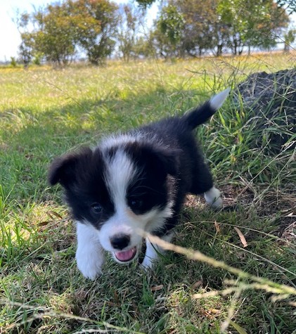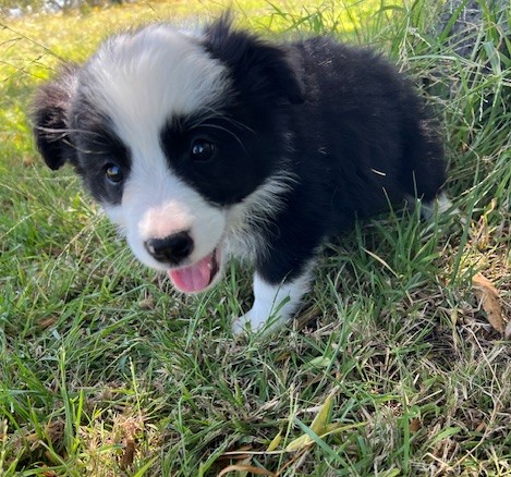 Piper’s white collar puppy just loves to follow people around as she absolutely loves cuddles. She is very gentle and affectionate and happily plays with her littermates. Our puppies are raised in a family environment. The puppies are well socialised and come with pedigree papers on limited register with Dogs Australia. Puppies are microchipped, vet-checked, vaccinated at six weeks old, and regularly wormed from two weeks old. She will be ready to go to her new home from 28th January 2026. Price is $2,000. Source No: RB177604 Microchip number; 953010007958902 Dogs VIC membership No: 3100059049. Please contact Dog VIC on email; office@dogsvictoria.org.au to verify membership.